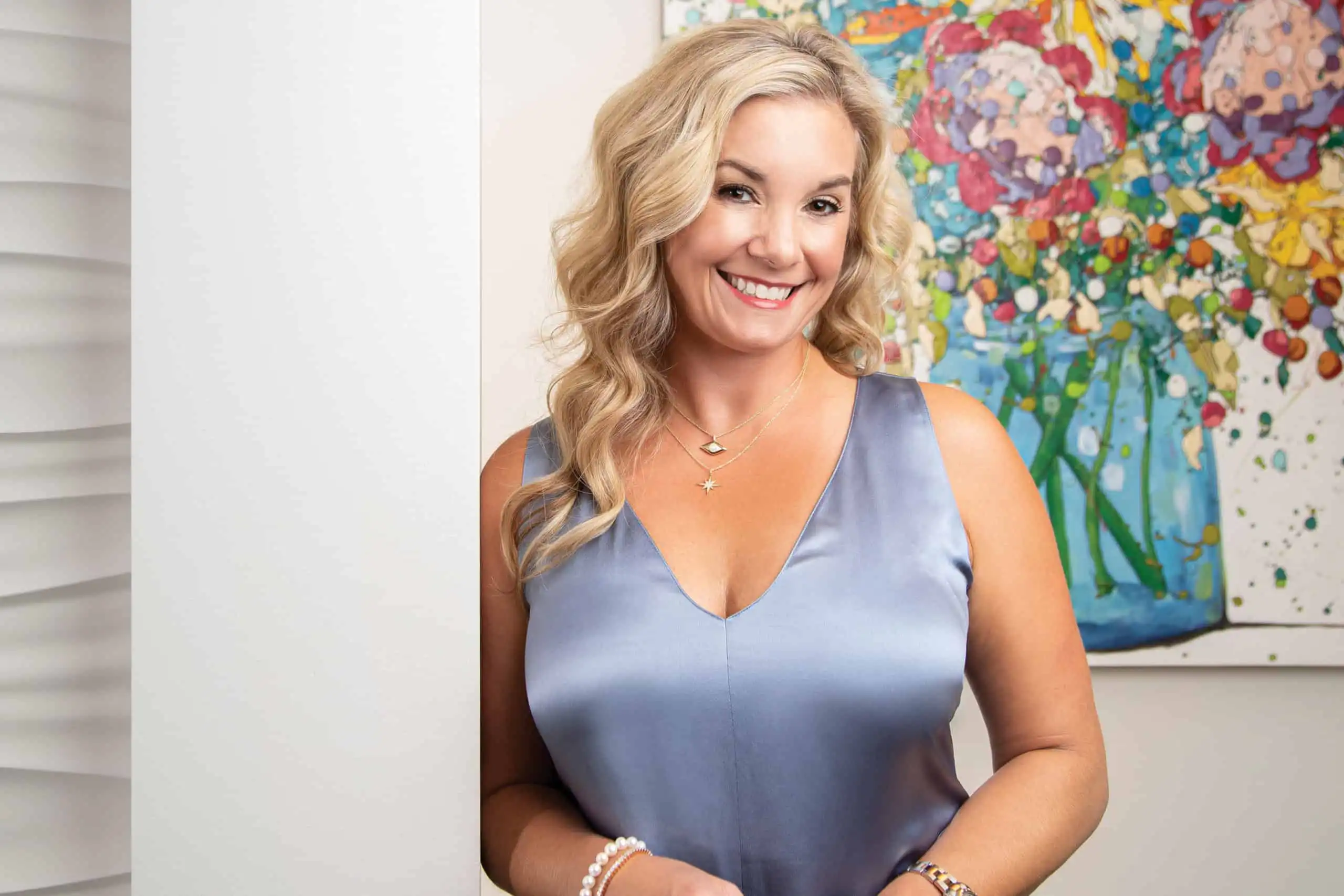 The Women Helping Women Art Project is an innovative + ingenious initiative that not only graces the walls of the breast center, it also provides meaningful compensation to the artists. “We work directly with the artists and the donors. The price is set for each piece and the artist receives 100% of the money paid by the donor,” Natalie elaborates. Installation, with a plaque recognizing the donor, is coordinated as recognition for this gift of beauty and solace.